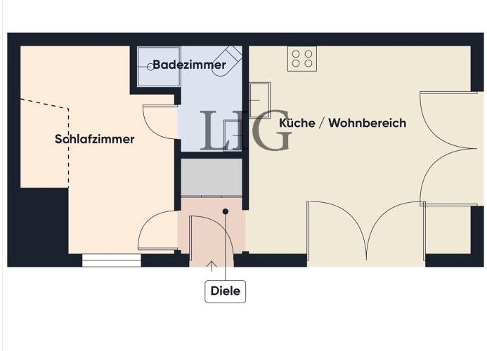 Der Wohn- und Essbereich ist ausgestattet mit einem gemütlichen Sofa (Schlaffunktion), Flachbild-TV, HiFi-Anlage und DVD-Player – ideal für entspannte Abende. Die offene Küche bietet alles, was Sie brauchen: Ceranfeld, Kühlschrank mit Gefrierfach, Geschirrspüler, Kaffeemaschine, Toaster, Wasserkocher und vieles mehr.
